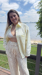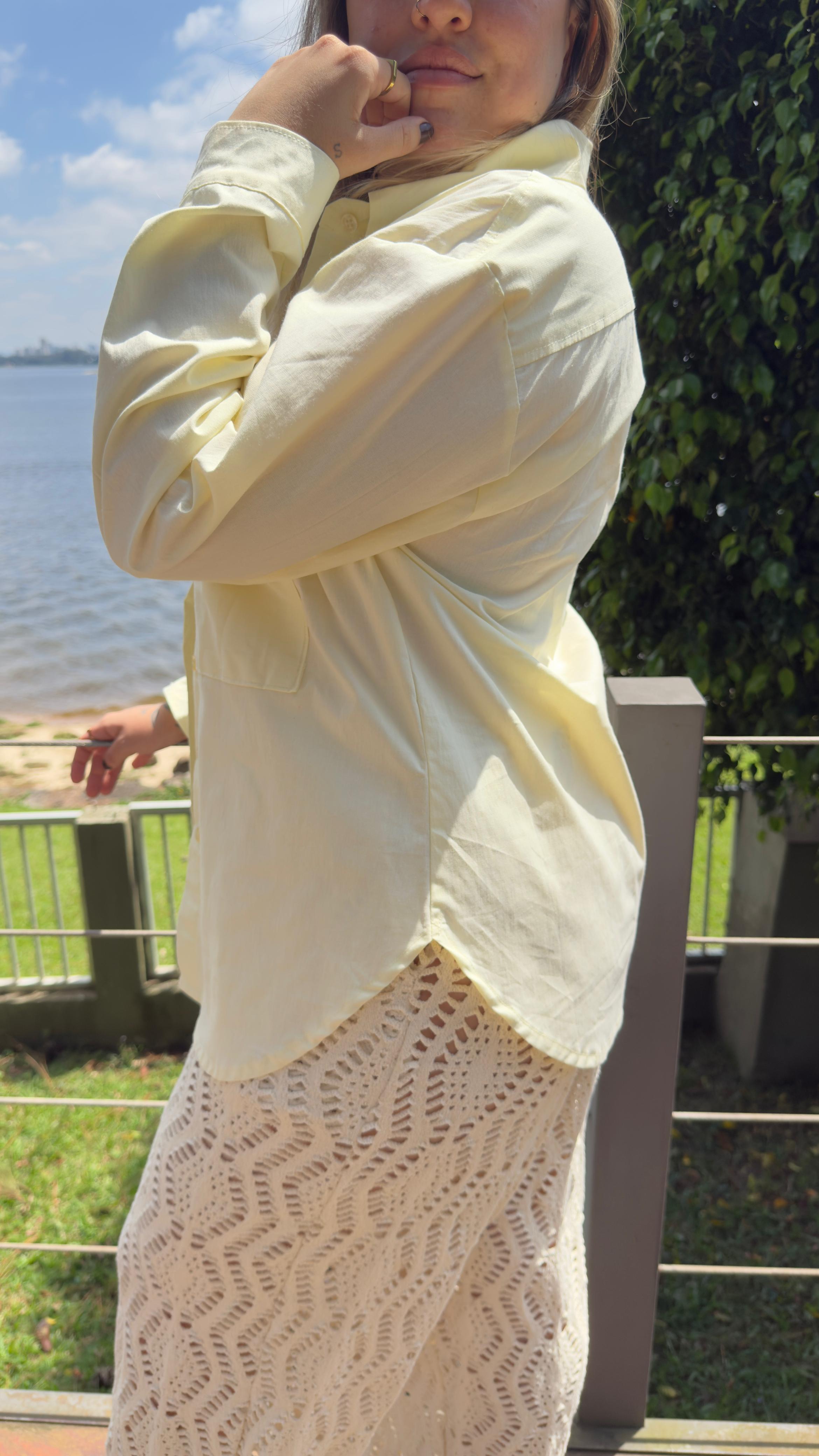 Camisa algodão manga longa amarelo manteiga
