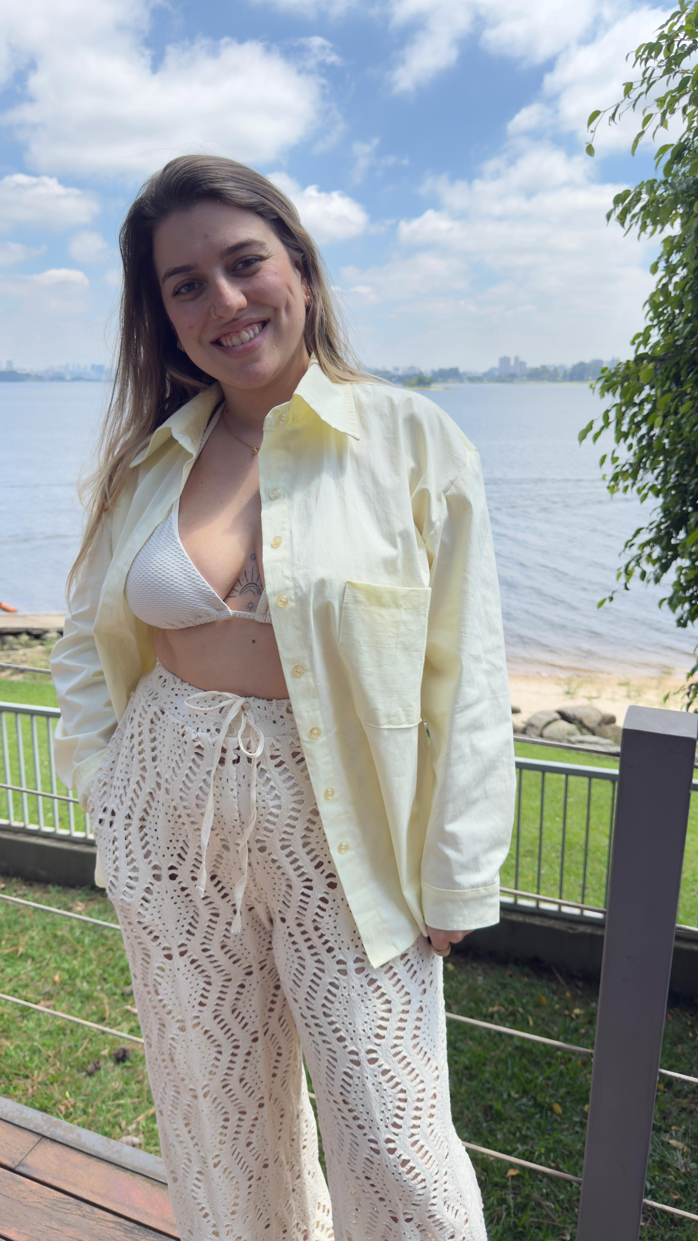 Comprimento Alongado: Ideal para usar com legging, com nosso shorts de algodão ou até como uma saída de praia sofisticada. Ela cobre o quadril com elegância.