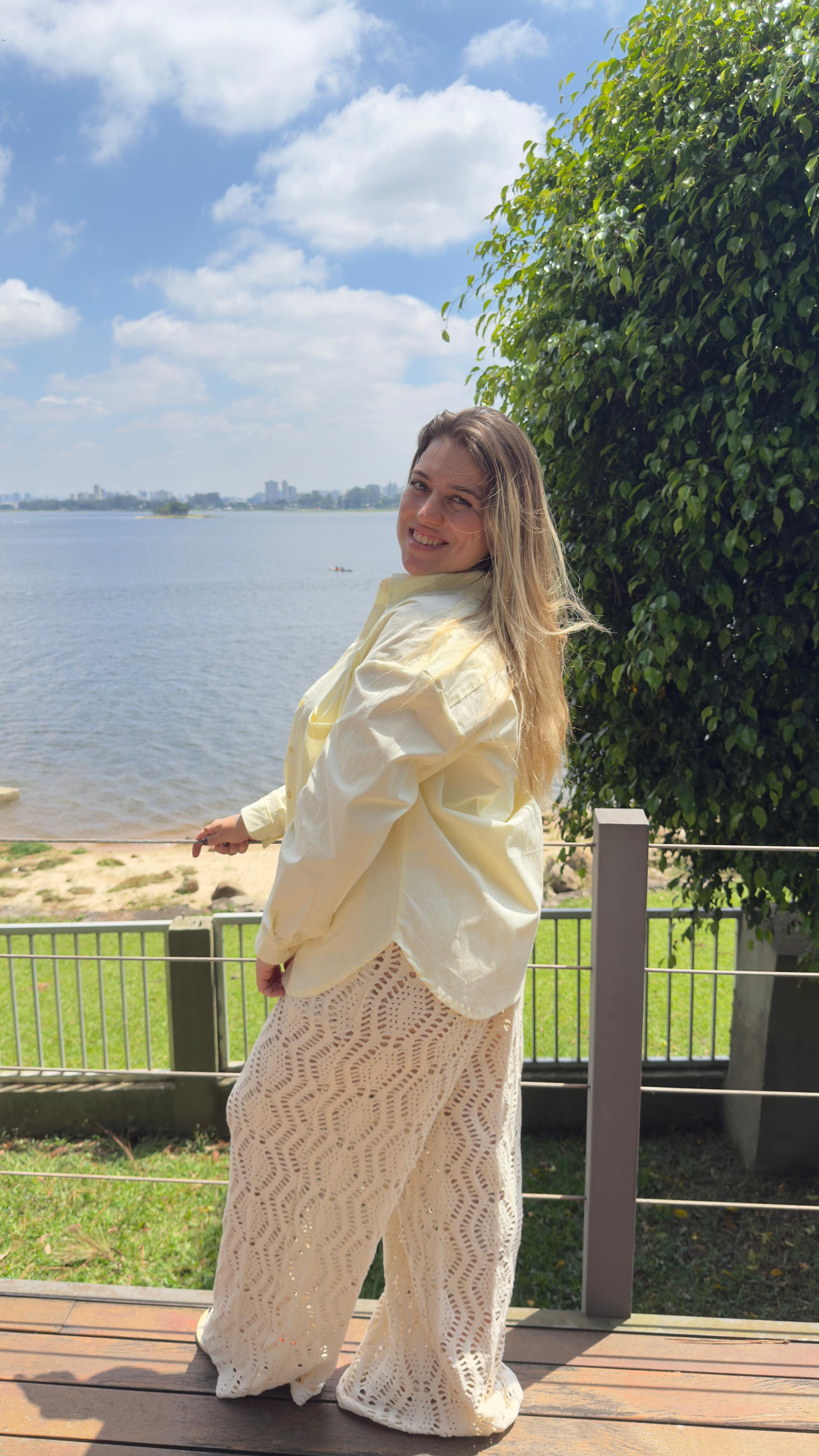 Dica de Estilo: Use-a totalmente aberta como um "casaco leve" sobre uma regata, ou dê um nó na frente para marcar a cintura e criar um visual moderno e feminino. É uma peça, infinitas possibilidades.