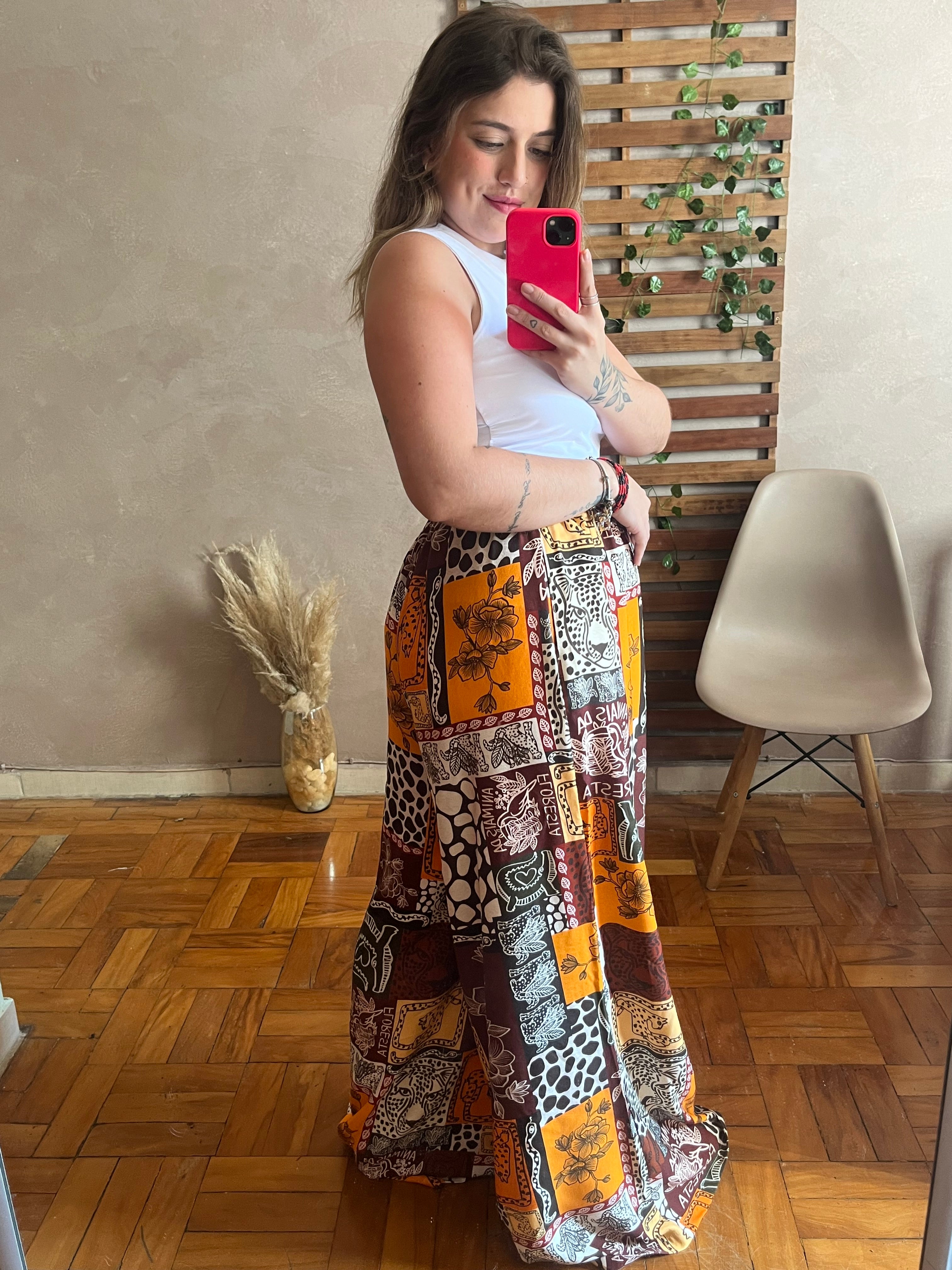 Calça pantalona viscose geométrico ll