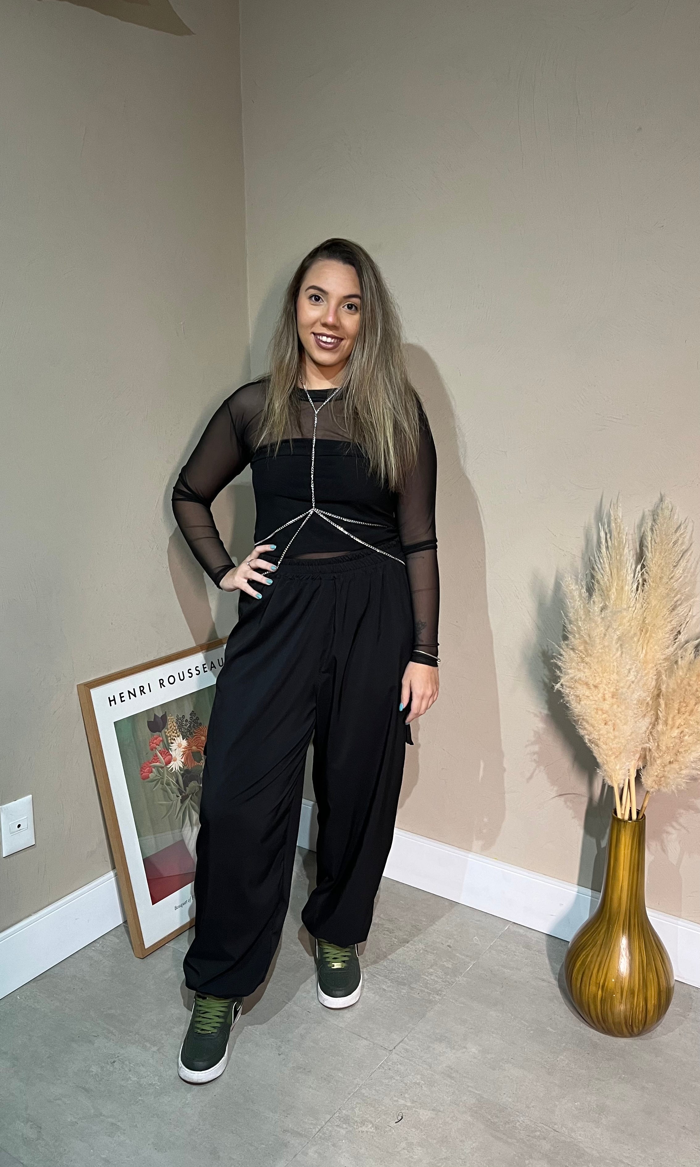Possui uma modelagem moderna e descontraída, ele é ideias pra compor looks mais frescos e cheios de estilo.