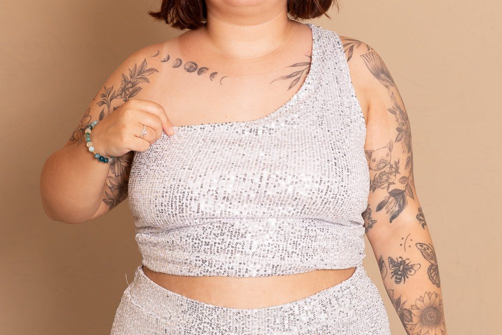 Pensando em você que ama top e que ama BRILHO, desenvolvemos o nosso top um ombro só!