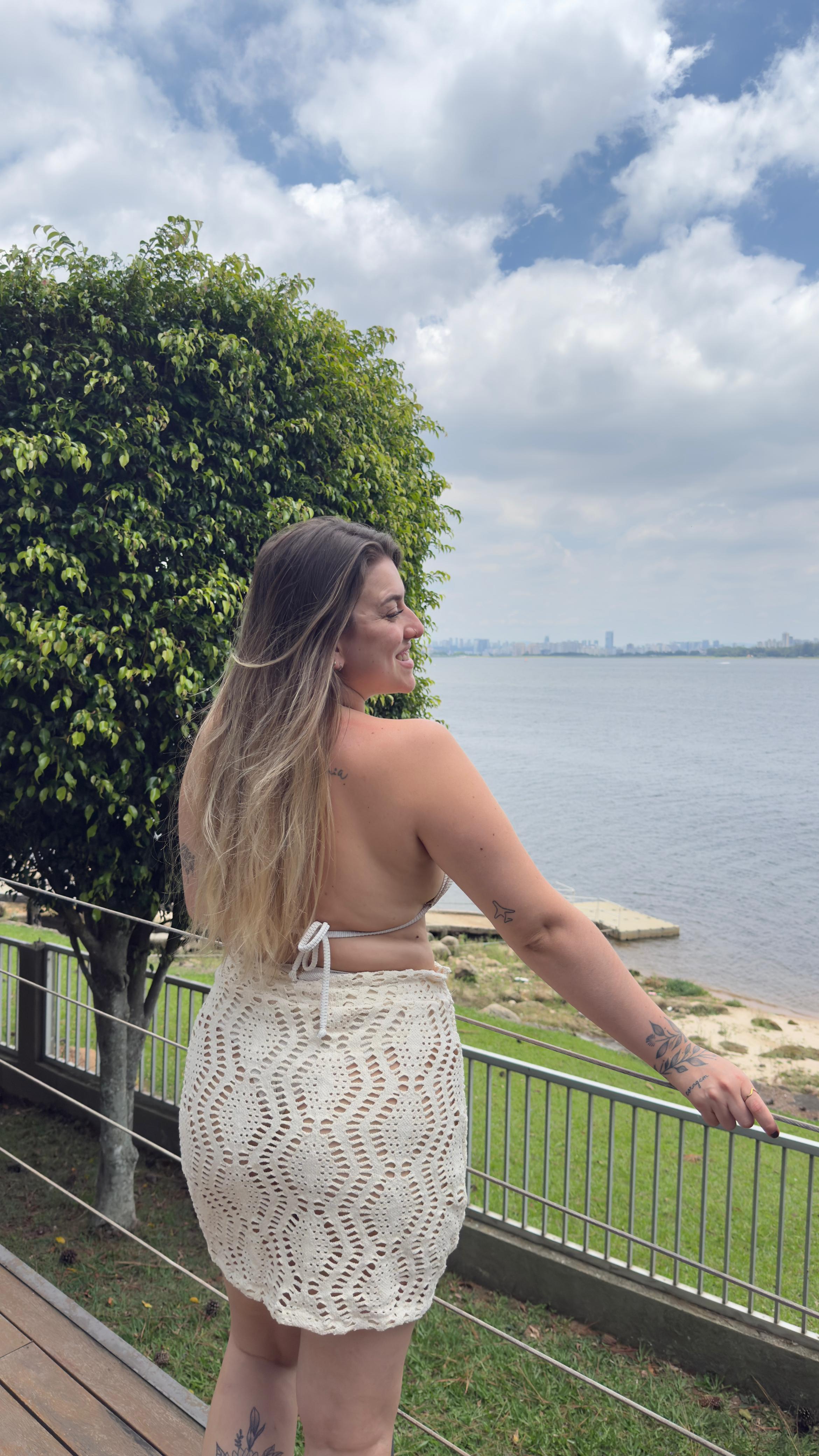Para quem ama um visual feminino e cheio de personalidade, a nossa Saia de Crochê é a união perfeita entre a elegância do trabalho artesanal e a tecnologia do tecido com elastano.