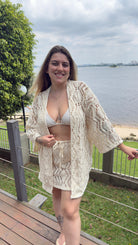O Charme do Crochê: O acabamento em crochê traz uma textura rica e um ar sofisticado, transformando um look simples em uma produção super estilosa.