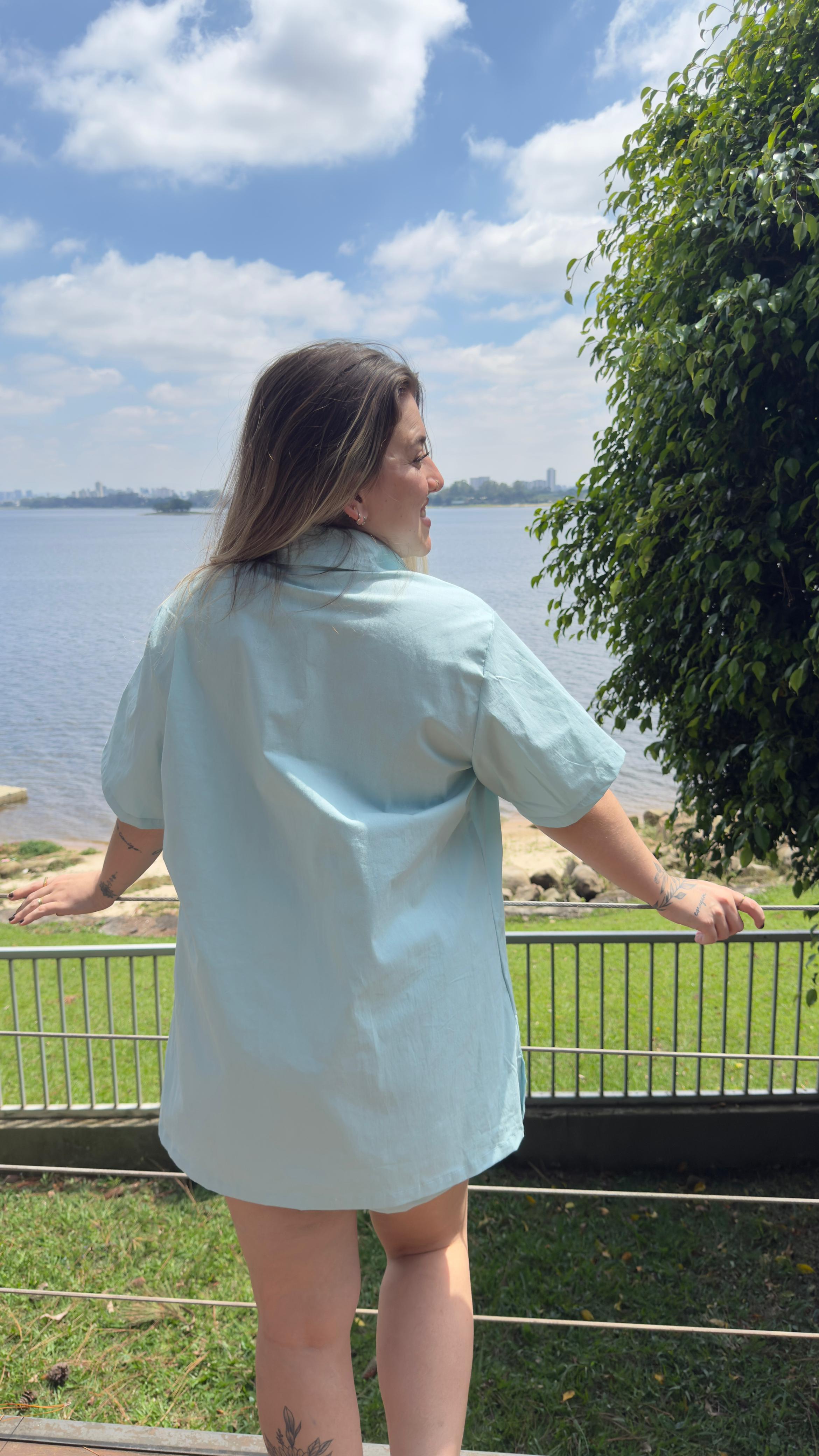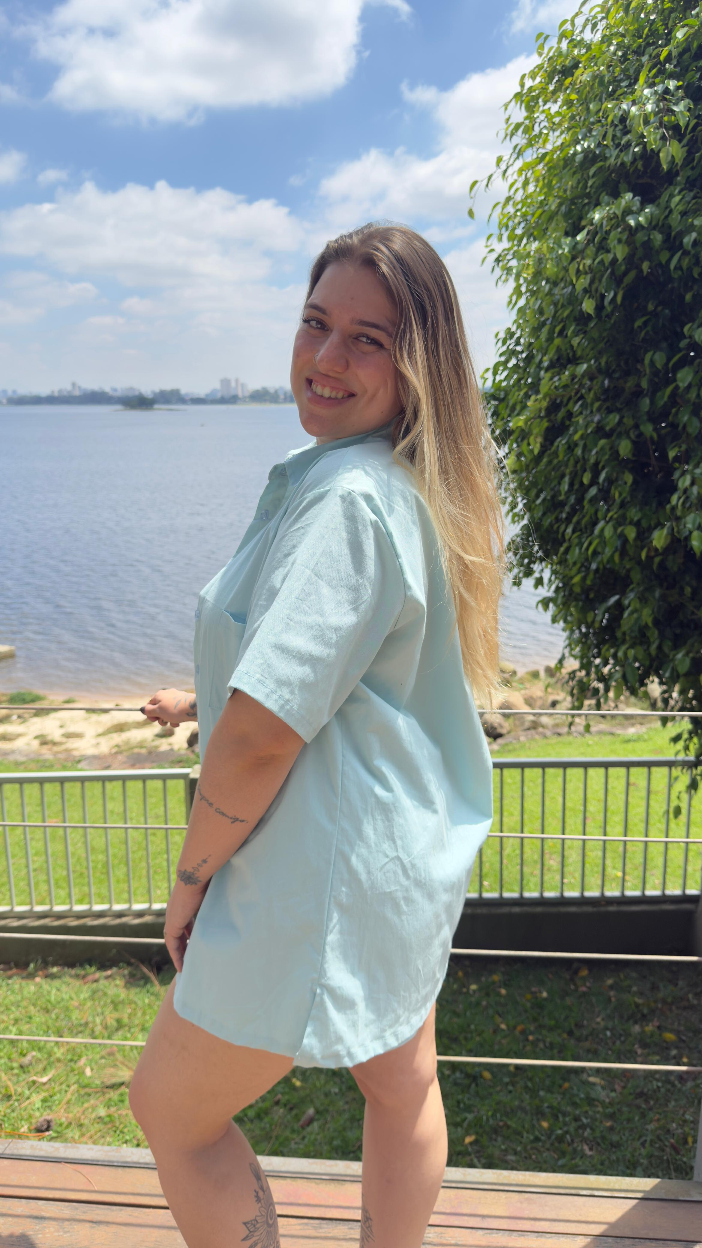 Camisa algodão azul bebê
